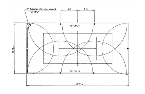 Sand-Tennis-Plätze sind eine feine Sache, solange die Feuchte des Belages optimal ist. Aber wehe, die Möglichkeit einer gleichmäßigen Befeuchtung ist nicht gegeben. Beugen Sie diesem Problem vor, installieren Sie mit uns eine vollautomatische Versenk-Beregnungsanlage.