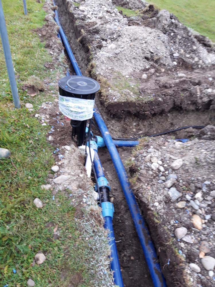 Einbau einer RAINBIRD-Beregnung in die neue Impuls-Arena (2009) Umrüstung teilweise in Perrot in 2013